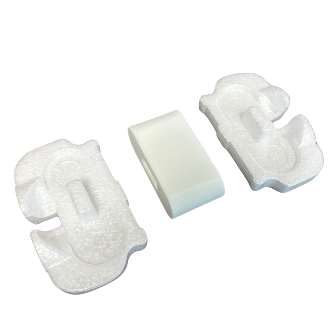 - Die Styropor-Halterung ist drei-teilig, somit lässt sich eine Uhr passend dort fixieren.